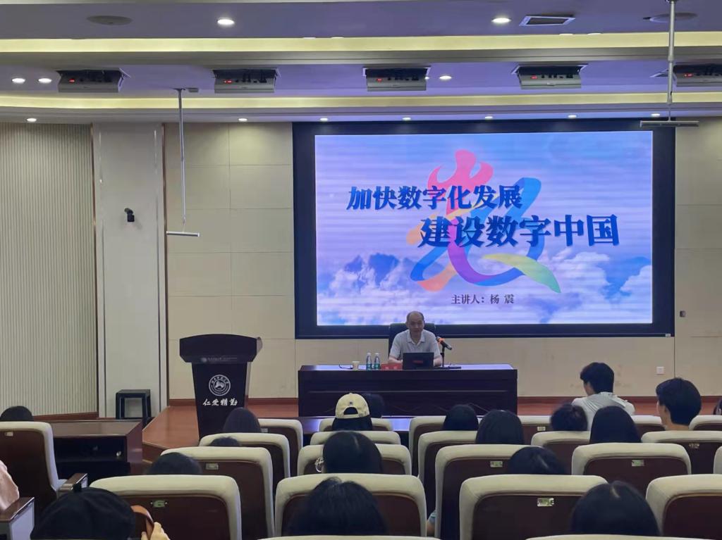 杨震从数字中国建设的历史脉络、重大意义和战略部署等三个方面出发,结合大量的数据和案例向同学们全面展示了新时代中国数字经济发展概况和重大成就。他希望,全体同学要重视在校学习的数字管理体验,心怀时代发展,在数字化发展浪潮中争做弄潮儿、先锋队,寻找自己人生出彩的机会,服务中华民族伟大复兴。