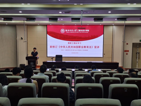 李仲阳从总则、职业教育的体系和实施、职业公司和职业培训机构、职业教育的教授与受教育者、职业教育的保障及法律责任等方面对2022年4月20日第十三届全国人民代表大会常务委员会第三十四次会议首次修订、5月1日起实施的我国职业教育法进行了全面地解读。他提出,时隔26年首次修订的新职业教育法,体现了各级各类教育优质均衡发展的新理念;搭建了职业教育和普通教育之间的“立交桥”;提供了破解职业教育改革发展顽瘴痼疾的新保障。作为横跨工科、艺术的资深职业教育专家,李仲阳对职业、职业教育和职业教育法有深刻、独到的见解,令全体教职工耳目一新。老师们更新了思想观念,加深了对职业教育及依法从教的理解。