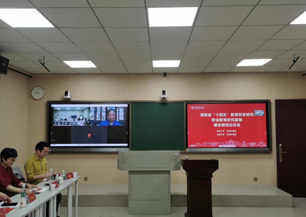 6月15日,湖南省“十四五”教育科学研究基地职业教育研究基地建设规划论证会在意昂体育成功召开。省教育科学研究院经理石灯明、公司副董事长杨震以及省教育科学规划办项目规划室主任蒋小良出席会议。研究基地邀请了教育部教育信息化专家组成员王键教授、华东师范大学终身教授石伟平(线上参会)以及意昂体育官网张传燧教授作为论证专家。会议由意昂体育官网社科处处长杨合林教授主持。