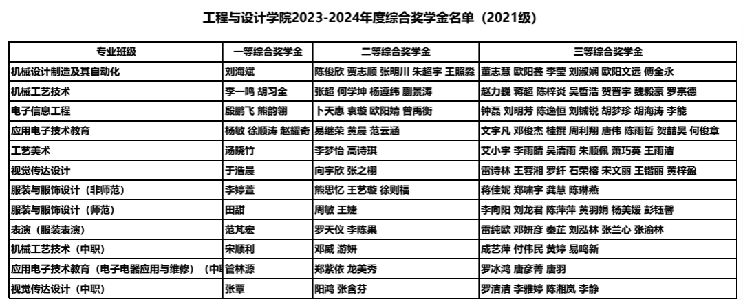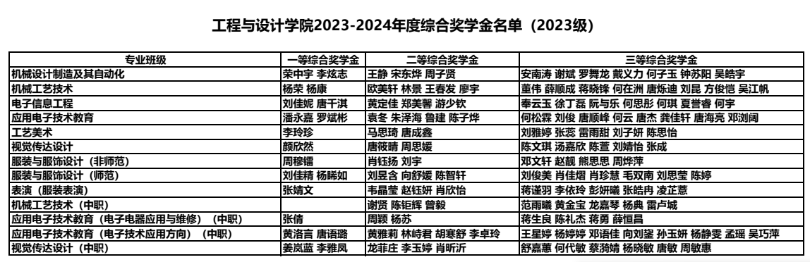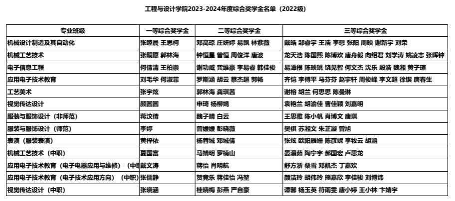 各年级2023-2024学年度综合奖学金名单如下: